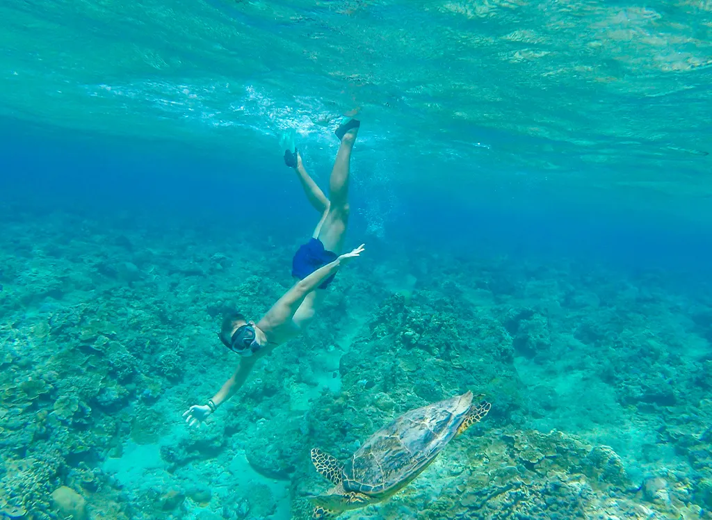 Upplev snorkling bland undervattensstatyer och havssköldpaddor på Gili Meno, följt av lunch ombord. Avkopplande strandupplevelser och äventyr väntar på dig!
