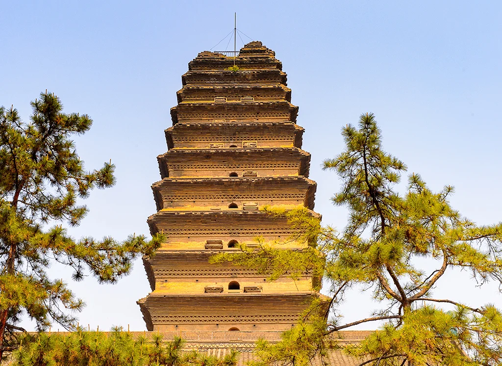 Small Wild Goose Pagoda är en historisk buddhistisk pagod uppförd under Tangdynastin (707 e.Kr.). Den användes för att förvara buddhistiska skrifter som fördes till Kina från Indien. Pagoden är känd för sin eleganta arkitektur och har överlevt flera jordbävningar – en symbol för både andlig och historisk betydelse.
