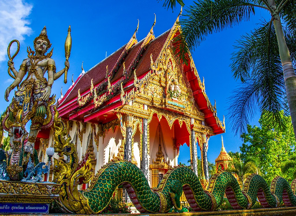 Nästa stopp är byn Salak Phet, där du besöker ett lokalt tempel och lär dig mer om buddhismen. Lunchen avnjuts i lugna omgivningar i Salak Phet, innan du fortsätter till den avlägsna Shambala Beach Bar i Klong Son-bukten. Här kan du koppla av, ta ett dopp eller njuta av en promenad längs stranden medan du njuter av en av barens uppfriskande frysta drycker. Senare på eftermiddagen återvänder du till hotellet.