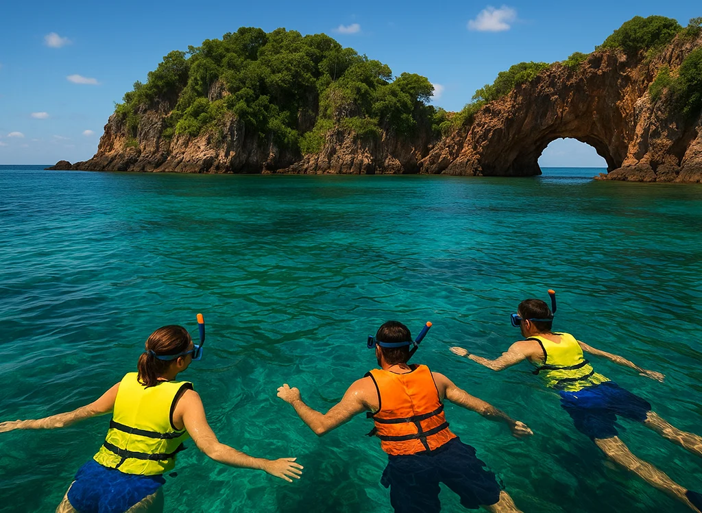 Här får du möjlighet att utforska färgglada korallrev och snorkla bland tropiska fiskar i det kristallklara vattnet. Upplev den imponerande arch rock, en naturlig klippformation, och koppla av på öns orörda stränder med turkosblått vatten.
