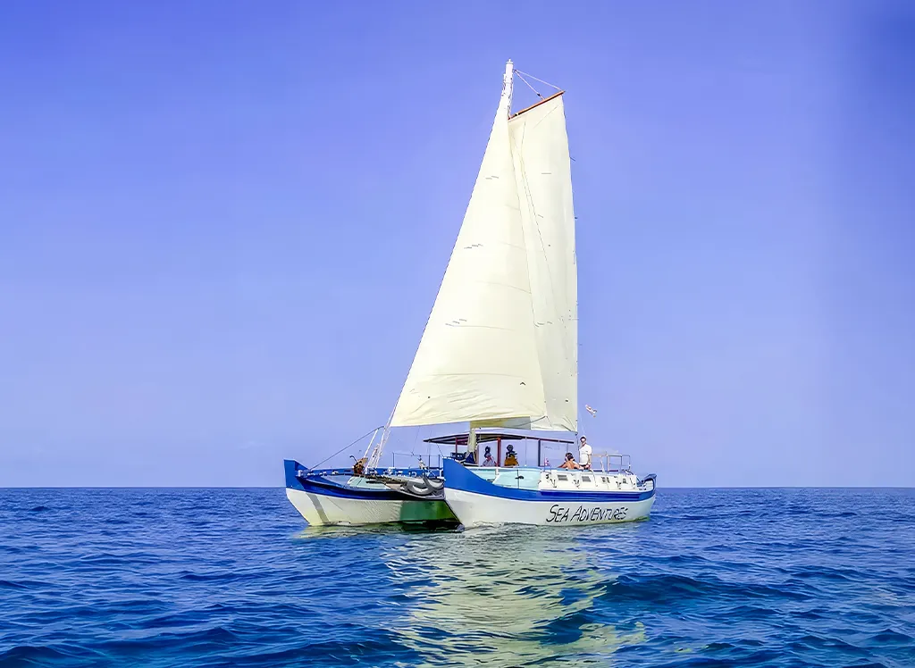 Tillbringa en avkopplande dag till sjöss med Sea Adventures katamaran. Njut av snorkling, fiske och lugn segling bort från de livliga områdena.