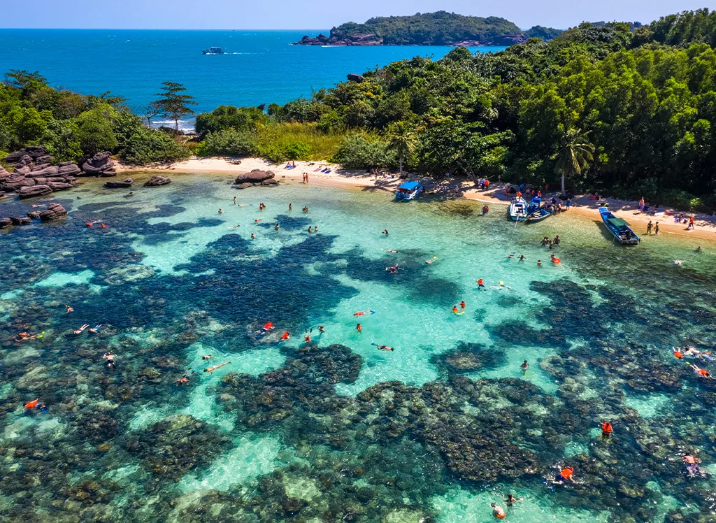 På Thom Island kan du välja en Seawalker-upplevelse (valfritt). Därefter fortsätter turen till Gam Ghi Island, där du kan snorkla vid de vackra korallreven och ta fina bilder, inklusive flycam-video.