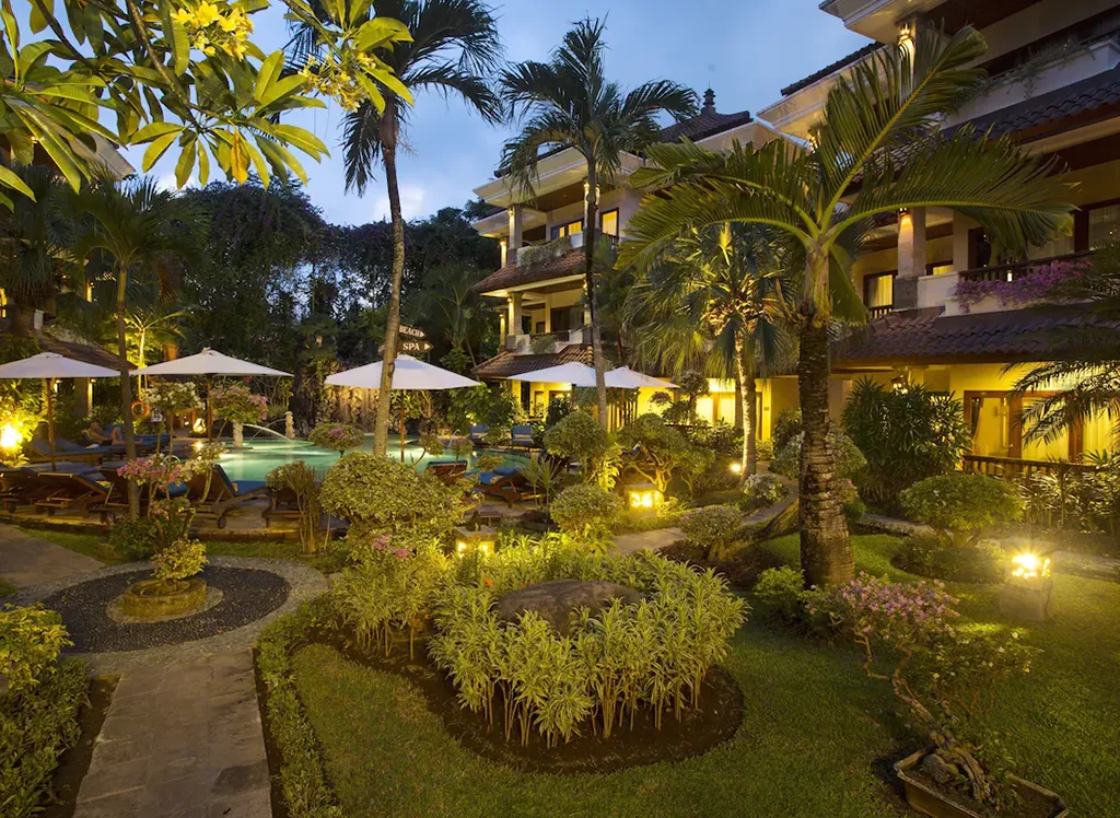 Resortet är uppfört i charmig, balinesisk stil med västerländsk komfort och alla de faciliteter du kan tänkas behöva. Bland annat erbjuder hotellet ett eget spa med möjlighet för massage, ett trevligt barområde, wifi, egen restaurang och inte minst ett härligt poolområde med sköna liggstolar och en barnpool.
