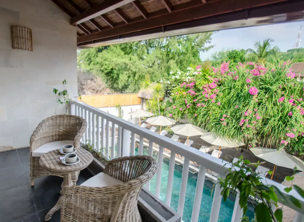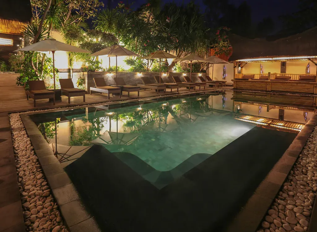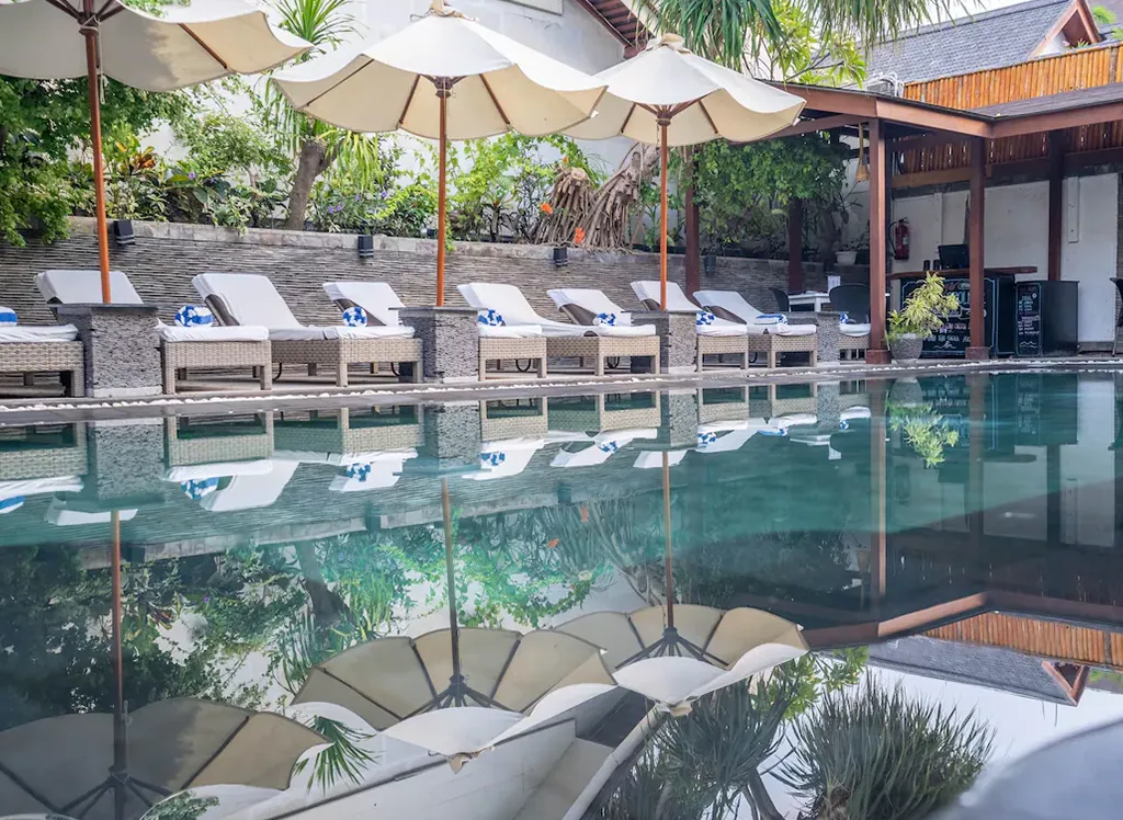 Trevligt strandhotell på Gili Trawangan med pool, dykcenter och restaurang - Scallywags Trawangan Resort. Hitta din drömresa till Gili-öarna här.