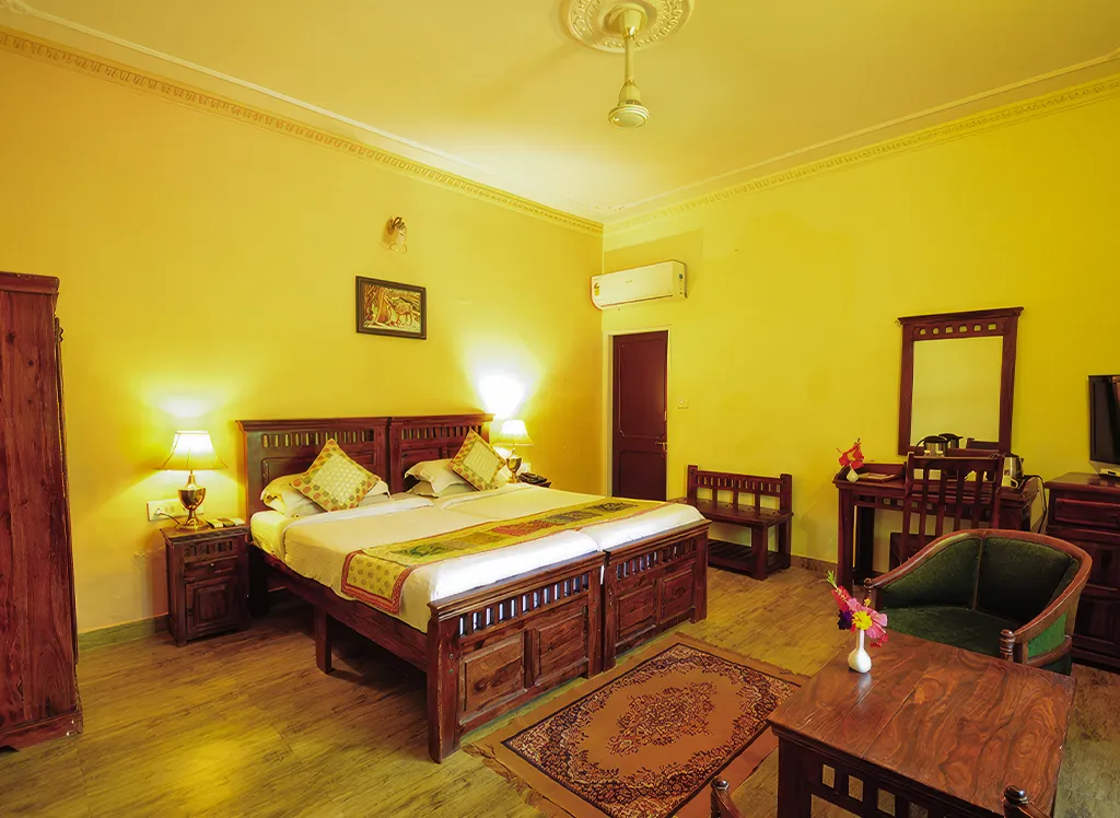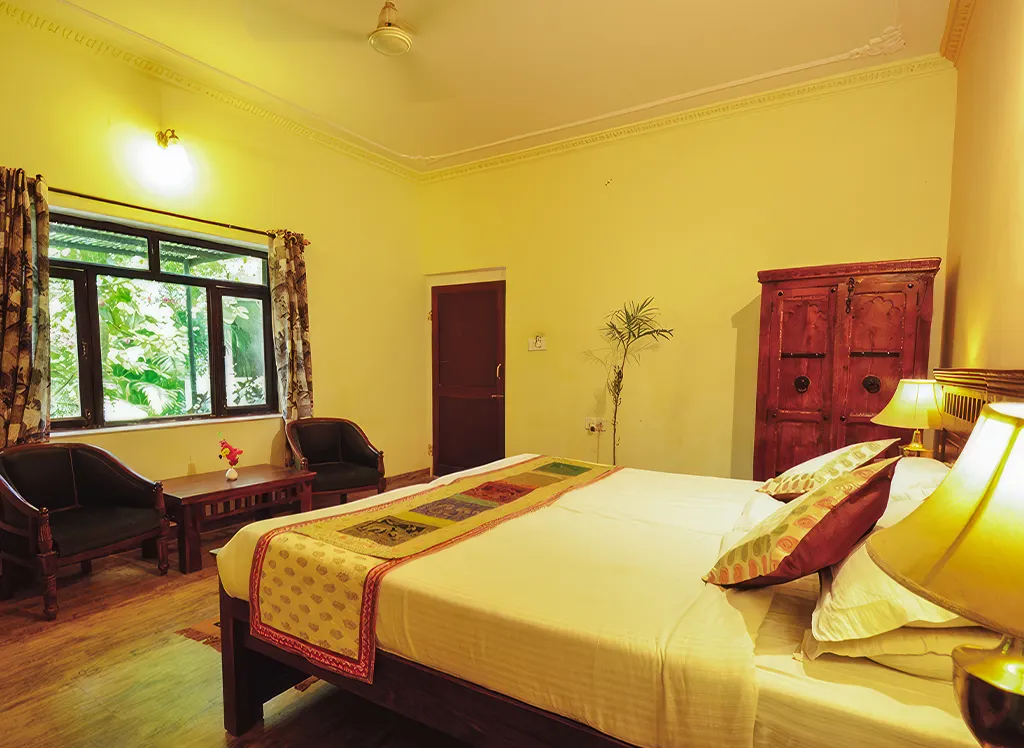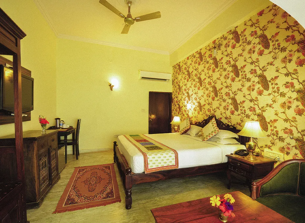 Hotel Raj Palace Resort ligger nära nationalparken Ranthambore och erbjuder stugor och rum med eget badrum. Njut av trädgården, poolområdet och den mångkulturella restaurangen. Perfekt bas för att besöka nationalparken och koppla av.