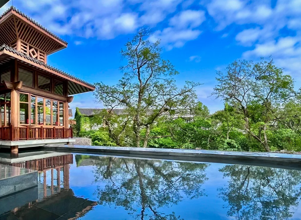 Hotellets restaurang serverar både kinesiska och västerländska rätter, tillagade med färska lokala råvaror. Frukosten serveras som buffé med ett brett urval, och du kan njuta av dina måltider med utsikt över floden och det omgivande landskapet.