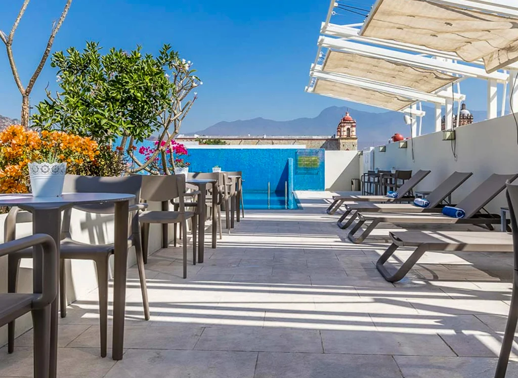 Bo centralt i Oaxaca hos Parador de Alcalá: moderna rum med luftkonditionering och Wi-Fi, restaurang med lokala rätter, pool och kort promenadavstånd till Santo Domingo, Zócalo och museer.