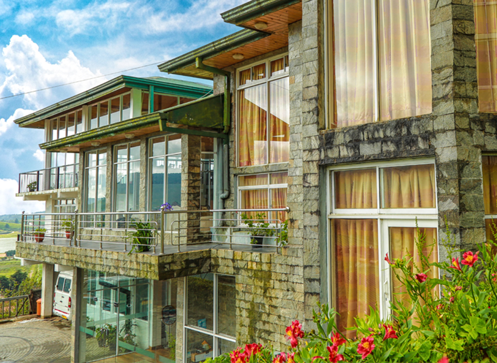 Hotellet har fantastisk utsikt mot gröna teplantager, Gregory’s Lake och inte minst Sri Lankas högsta berg – Pidurutalagala.