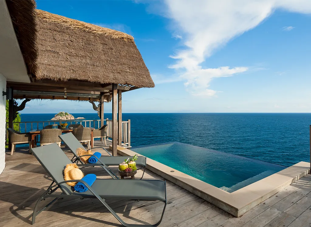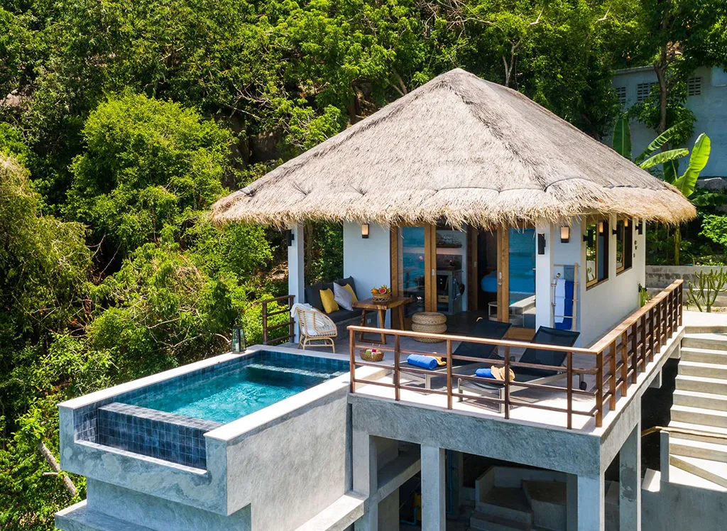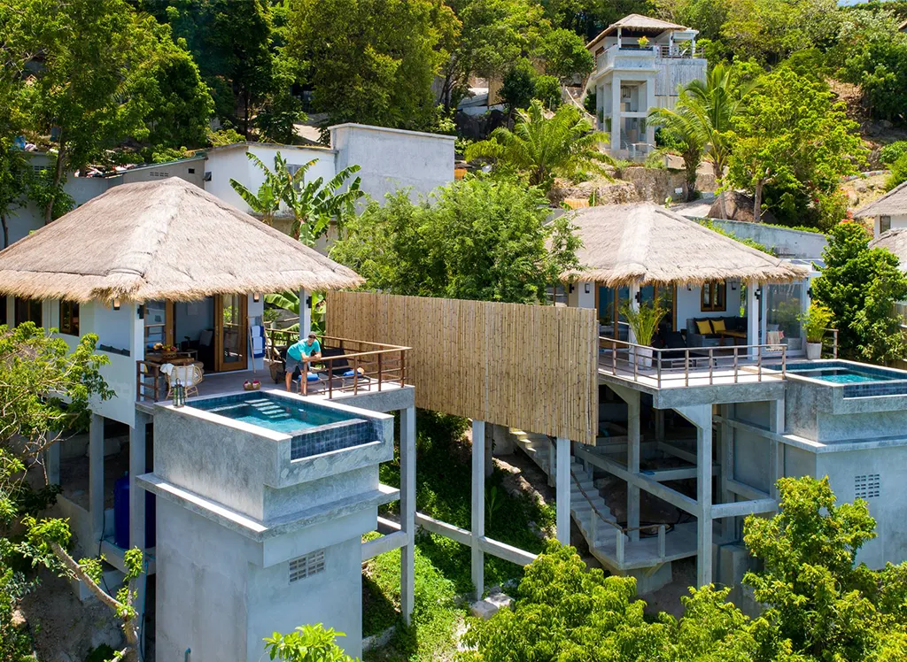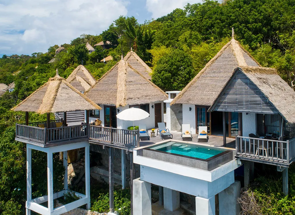 På Cape Shark Pool Villas bor du i lyxiga villor med privat infinitypool och en formidabel utsikt över Shark Bay på paradisön Koh Tao. Bli frestad här.