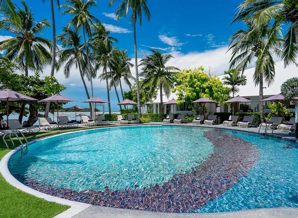 Hotellet har ett härligt poolområde med inbjudande pooler, en grund barnpool, gott om solstolar och parasoller, vajande palmer och en fantastisk utsikt över stranden och det kristallklara havet.