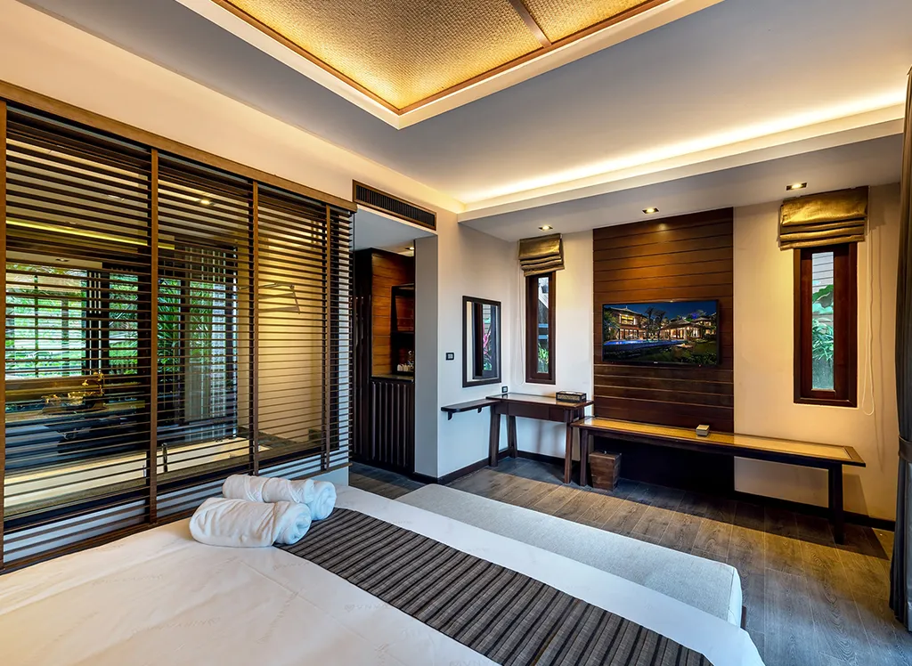Som utgångspunkt bor du i ett läckert och rymligt deluxerum med stor balkong och utsikt över de gröna omgivningarna. Rummet är möblerat med dubbelsäng, skrivbord och badrum med regndusch, hårtork och ett läckert bubbelbadkar. Alla rum har även värdeskåp, luftkonditionering, wi-fi och minibar. Det är möjligt att uppgradera till havsutsikt eller villa med egen pool.