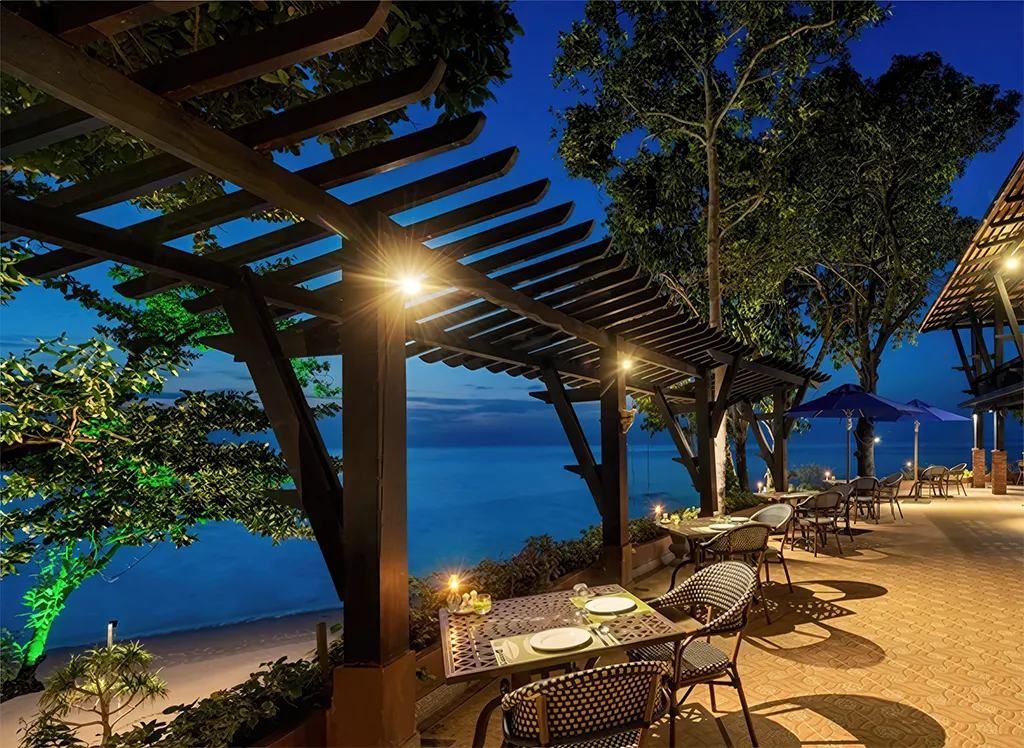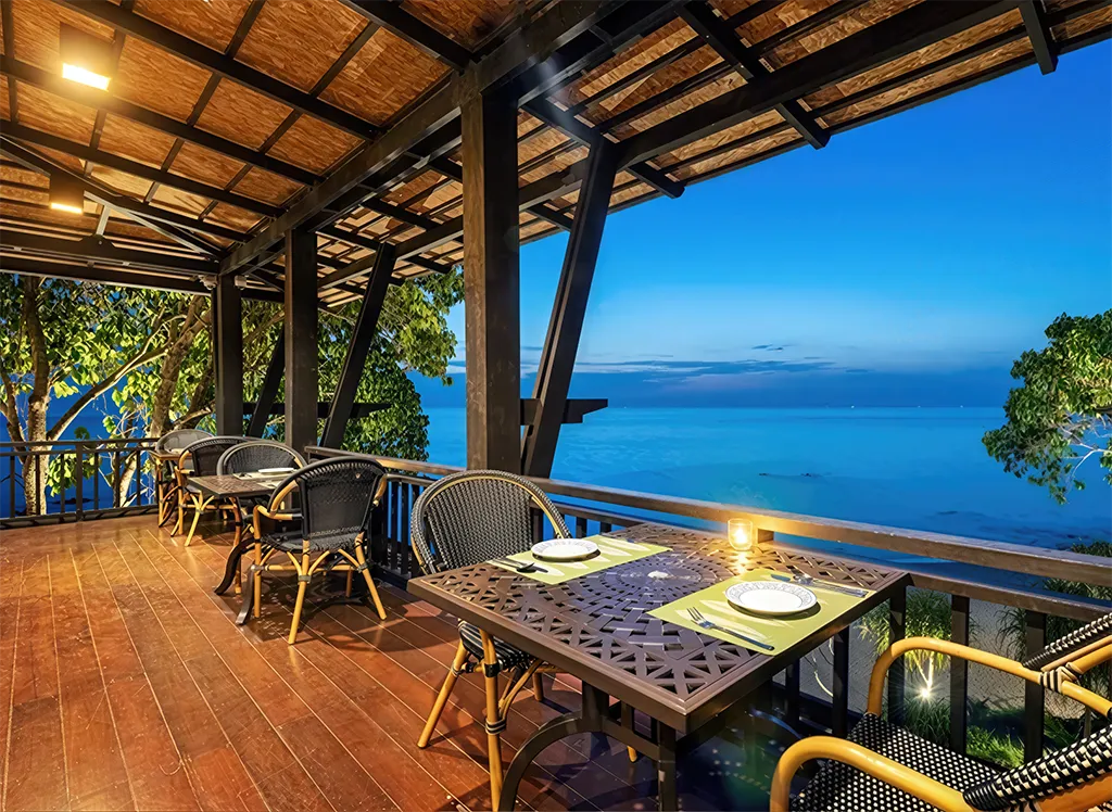 Restaurangen på Nirvana Beach Resort & Spa ligger högt ovanför stranden med en underbar utsikt över havet och serverar utsökt thaimat samt nyfångad skaldjur. Vill du prova något annorlunda finns det flera små restauranger längs stranden, eller så kan du ta en taxi till Lantas gamla stadsdel som ligger på östra sidan av ön.
