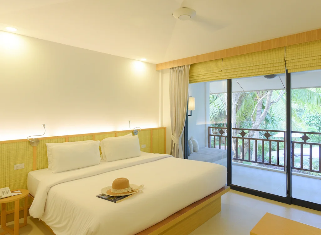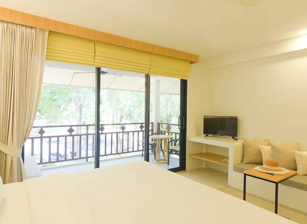 Resortens restaurang ligger nära stranden och serverar både thailändska specialiteter och internationella favoriter. Du kan njuta av din lunch och middag med havsutsikt. Det finns också en bar där du kan koppla av med kalla drycker och snacks – perfekt för en avslappnad eftermiddag eller en drink i solnedgången.