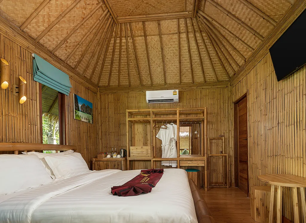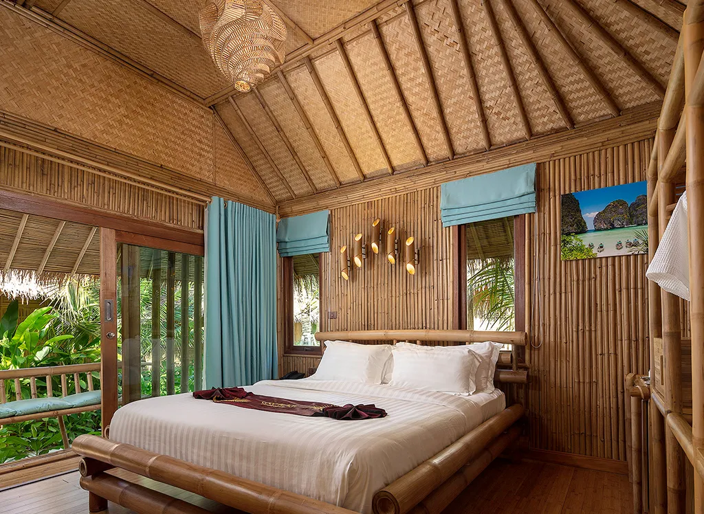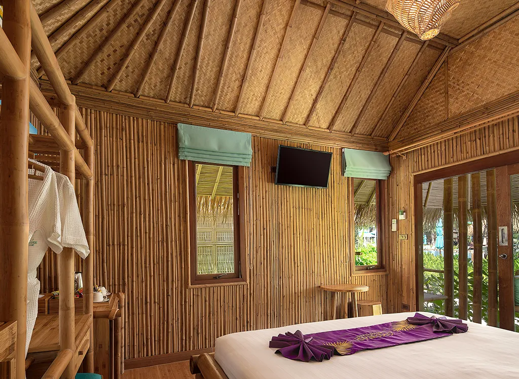På Phi Phi CoCo Beach Resort, som byggdes 2018, bor du i en fin bambubungalow med halmtak med dubbel- eller enkelsängar, garderob och ett fint badrum med dusch. Det finns även minibar, värdeskåp, TV och luftkonditionering. Alla bungalower har även en vacker terrass eller balkong med utsikt över den lummiga trädgården. Det är möjligt att uppgradera till havsutsikt.