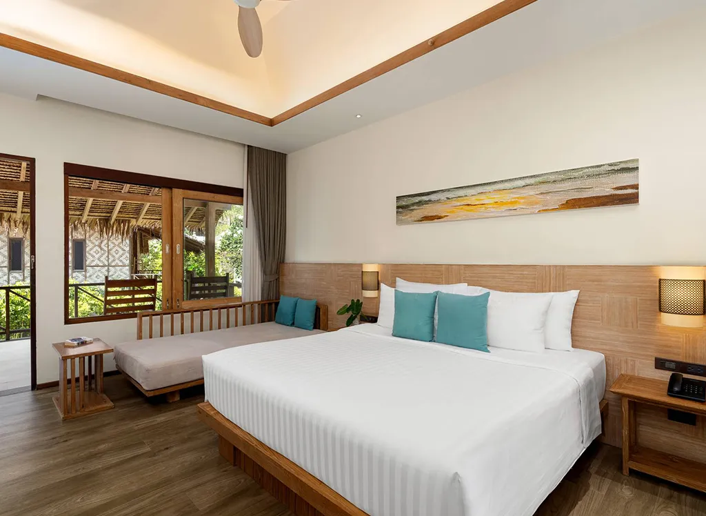 På SAii Phi Phi Island Village bor du i läckra bungalows med halmtak med en härlig, stor terrass där du kan koppla av och njuta av de tropiska omgivningarna. Alla bungalower är inredda i modern thailändsk stil med eget badrum, dubbel- eller enkelsängar, en liten schäslong, wi-fi, luftkonditionering, värdeskåp, TV, kylskåp och minibar. Det är möjligt att uppgradera till havsutsikt.