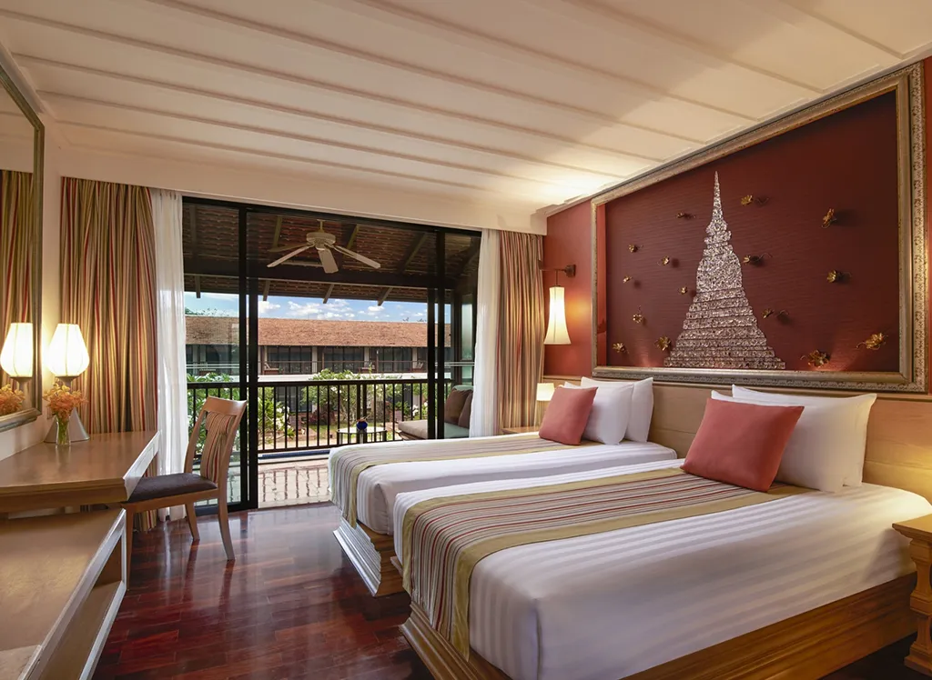 Alla rum på Sukhothai Heritage Resort är rymliga och trevligt inredda med bekväma sängar, eget badrum och en balkong där du kan njuta av utsikten över den lummiga trädgården eller poolen. Rummen har även TV och Wi-Fi.