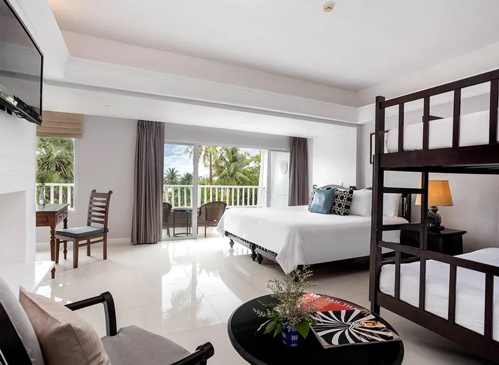 Rummen har utsikt över de tropiska trädgårdarna. Alla rum är utrustade med faciliteter som luftkonditionering, balkong, Wi-Fi och värdeskåp. För familjer finns det familjerum som erbjuder extra utrymme som våningssängar för barnen och privata terrasser eller balkonger.