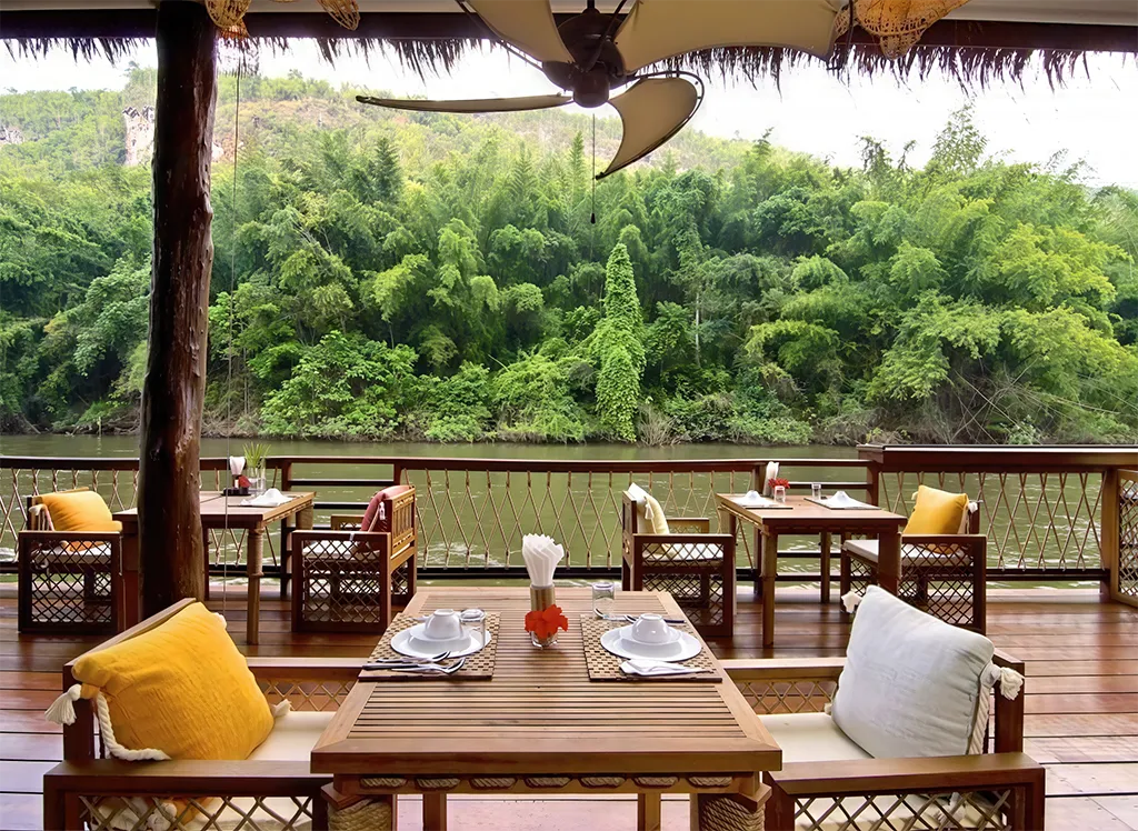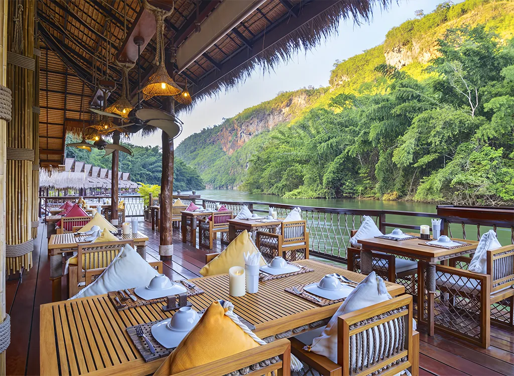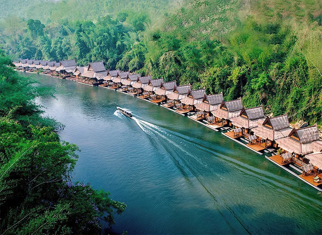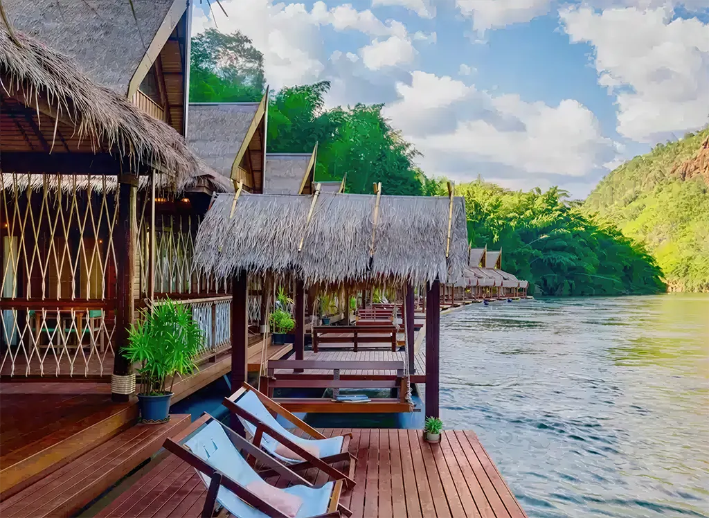 Välkommen till The FloatHouse River Kwai - en lyxig flytande resort omgiven av gröna berg och frodig djungel vid den ikoniska floden Kwai.