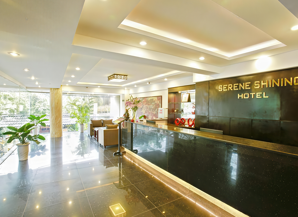 Serene Shining Hotel ligger i en modern byggnad på en lugn sidogata i Hues historiska kvarter, ett stenkast från bland annat Kejsarstaden Hue, Parfymfloden och karaktäristiska Trang Tien Bridge. Hotellet har egen bar, restaurang och spa.