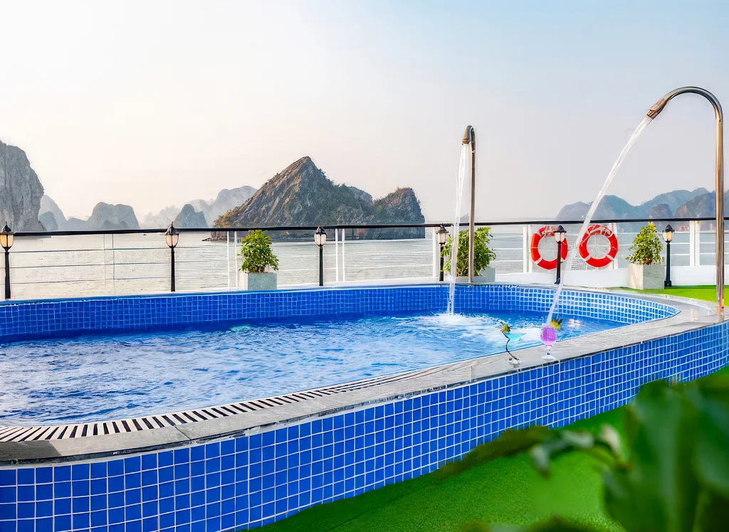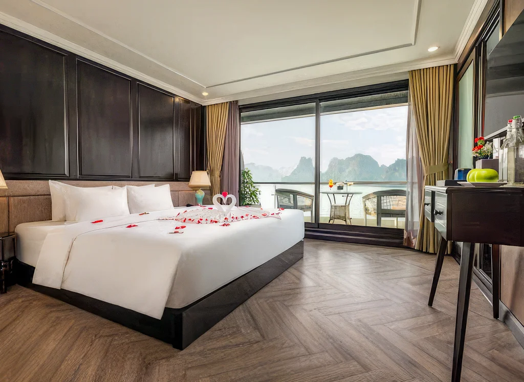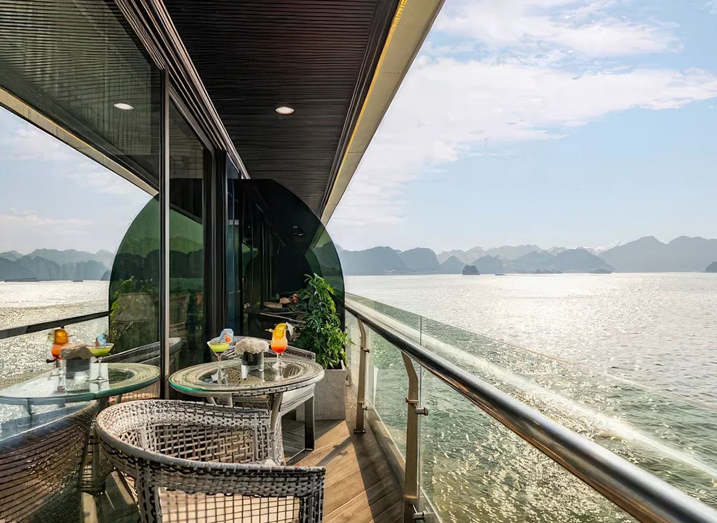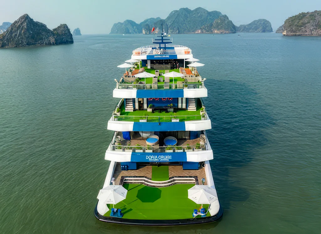 Segla i lugn och stil med Doria Cruise – lyxsviter, jacuzzier och gourmetmåltider i de UNESCO-skyddade Halong och Lan Ha Bay.