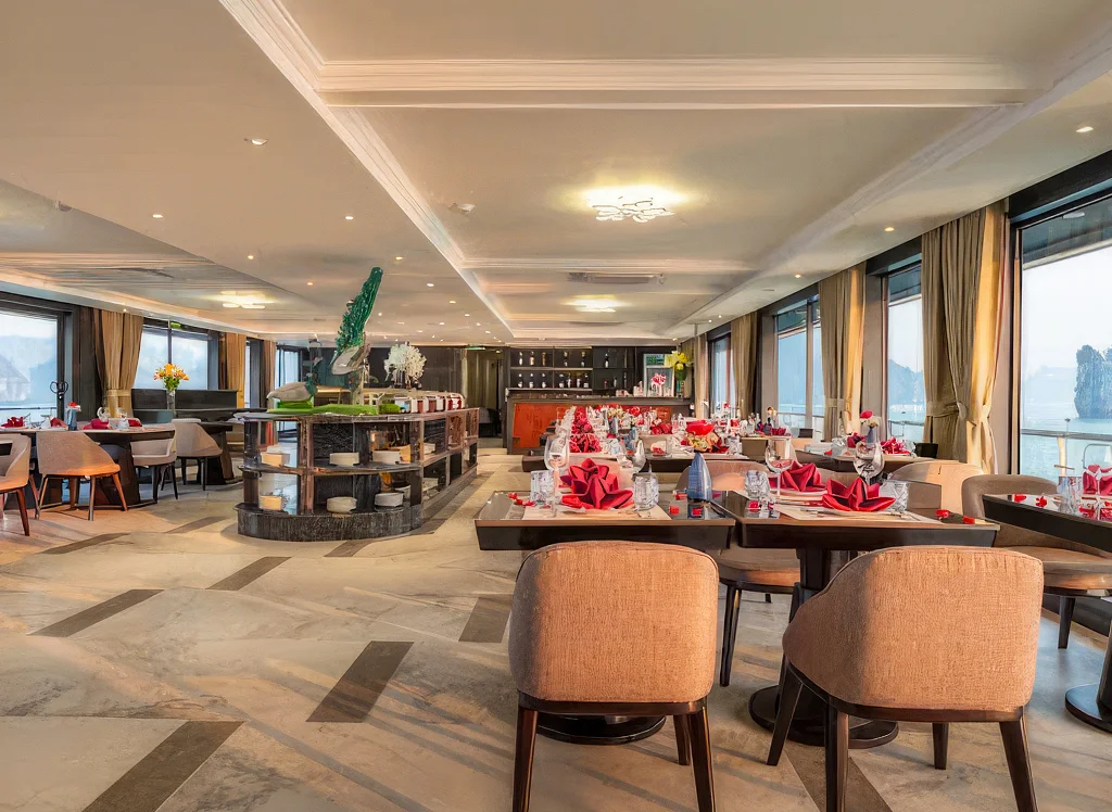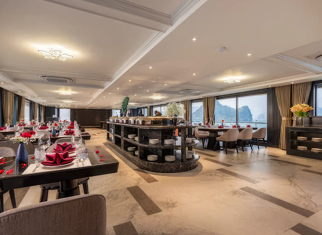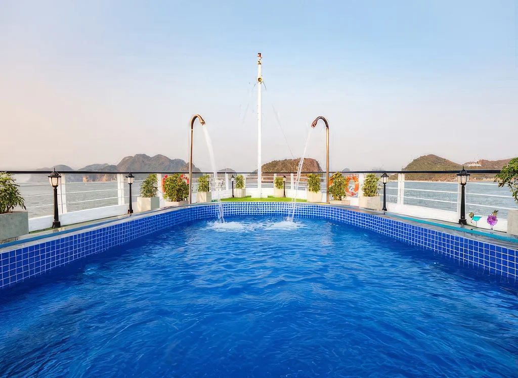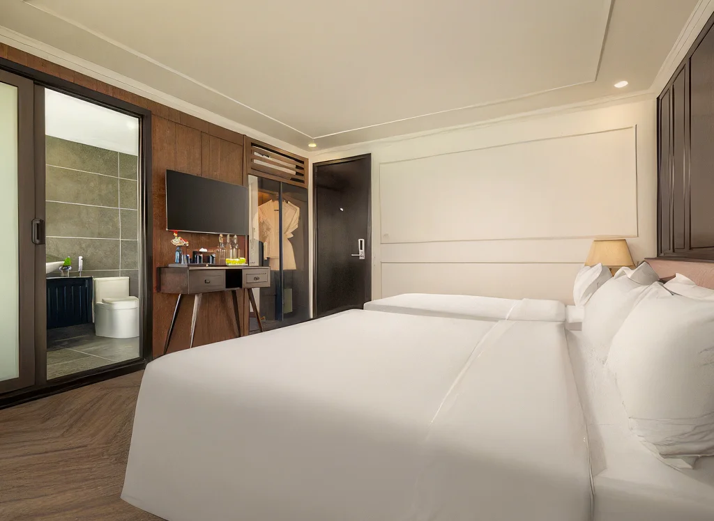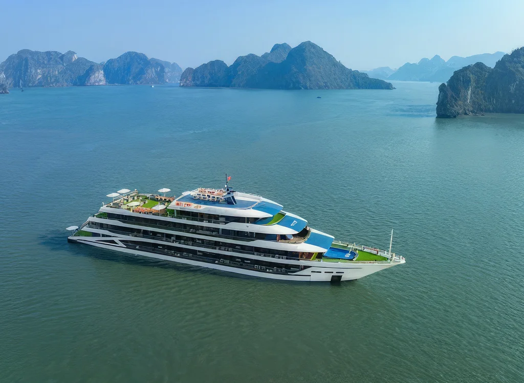 Segla i lugn och stil med Doria Cruise – lyxsviter, jacuzzier och gourmetmåltider i de UNESCO-skyddade Halong och Lan Ha Bay.