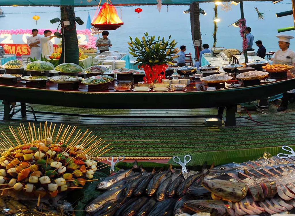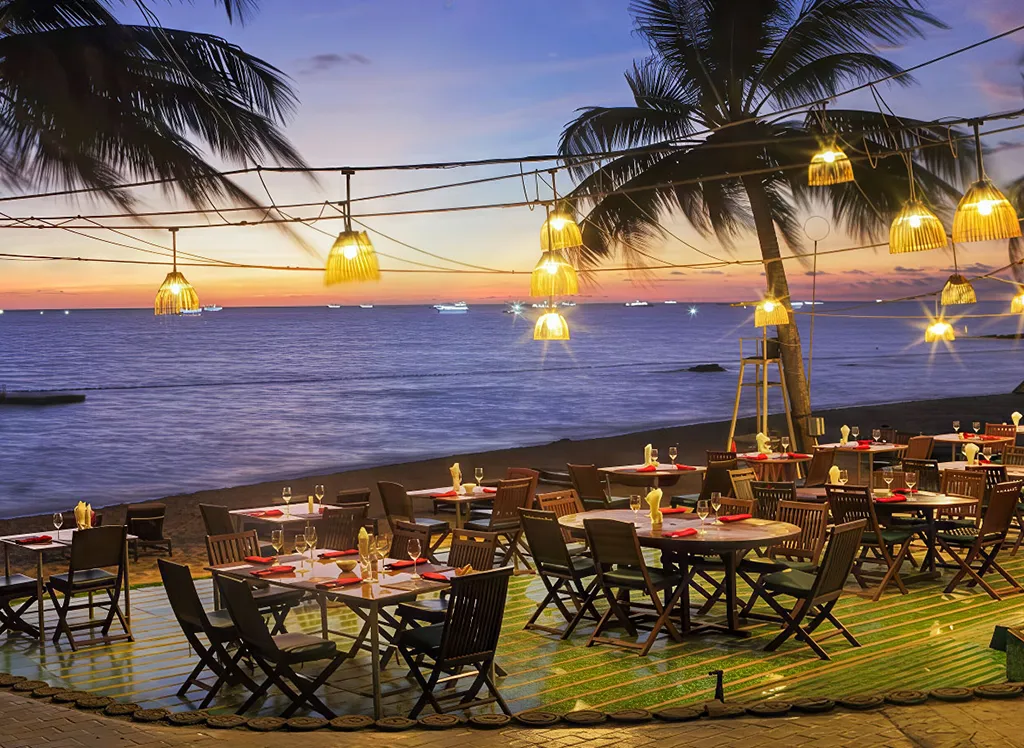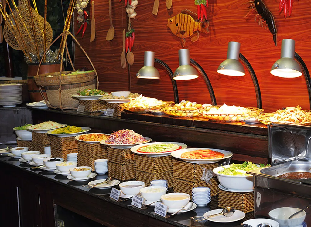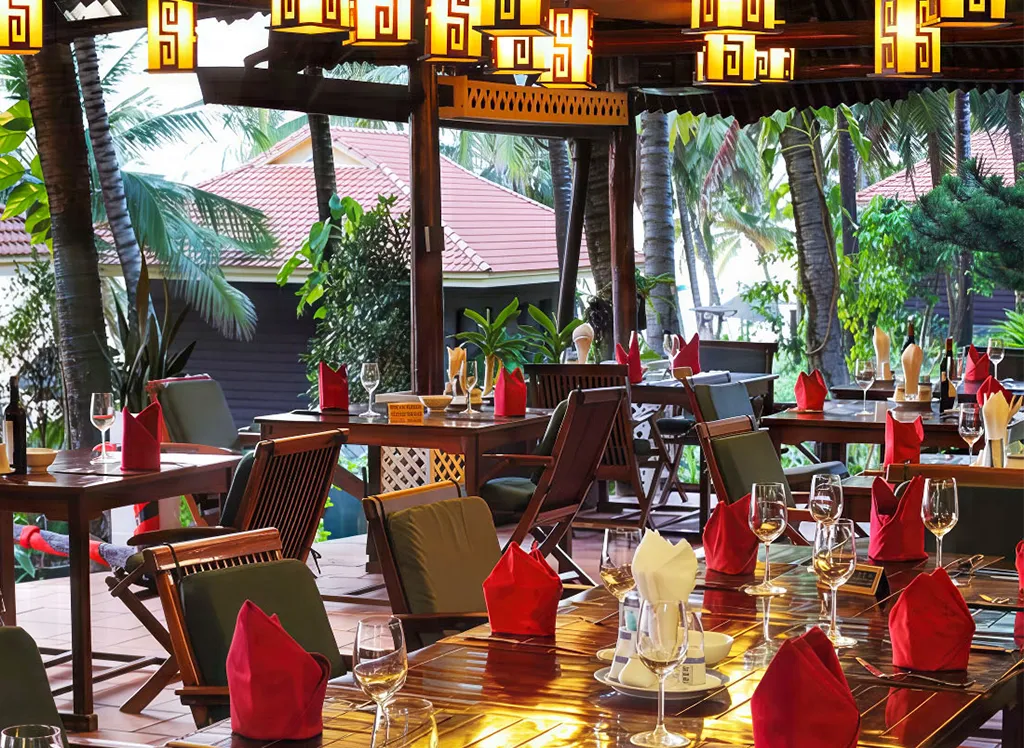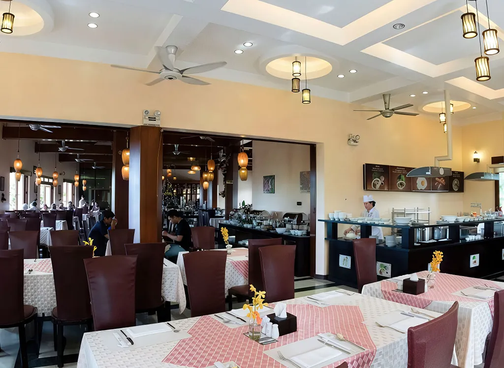När det blir dags att tänka på mat kan du välja mellan två olika restauranger, som bland annat erbjuder frukostbuffé, à la carte-meny och massor av fisk och skaldjur direkt från havet. Från Saigon Restaurant en trappa upp kan du njuta av den fantastiska panoramautsikten över Thailandviken och den vackra solnedgången över havet, medan Vietnam Restaurant ligger precis vid strandkanten och har en mysig bar, där du kan beställa både fatöl och cocktails.