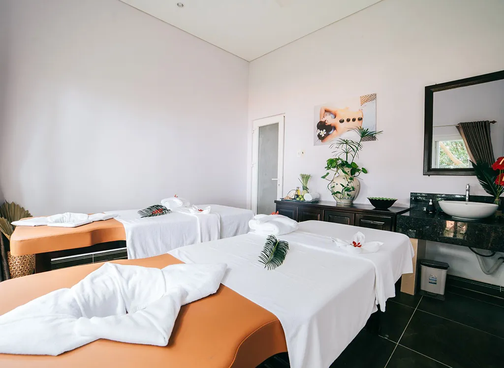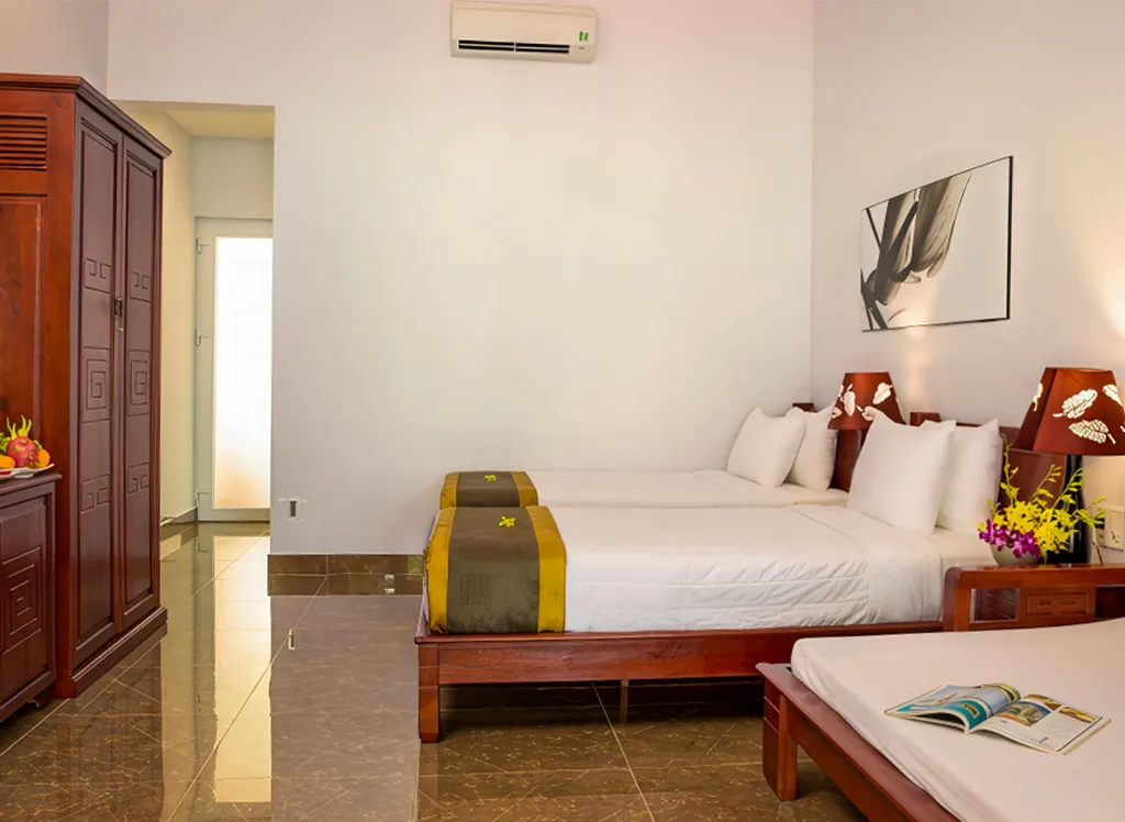 Faciliteterna inkluderar en infinity-pool med utsikt över havet, ett spa och två restauranger där du kan njuta av vietnamesiska och internationella rätter. Det finns också möjlighet till aktiviteter som kajakpaddling och cykelturer.