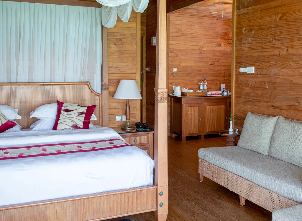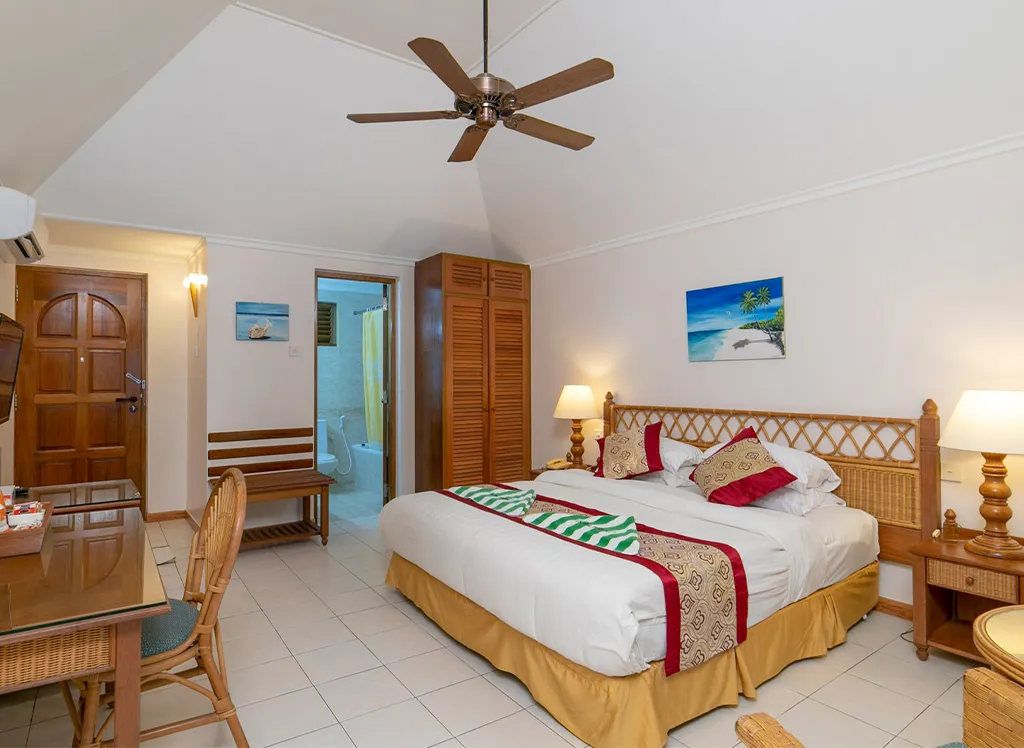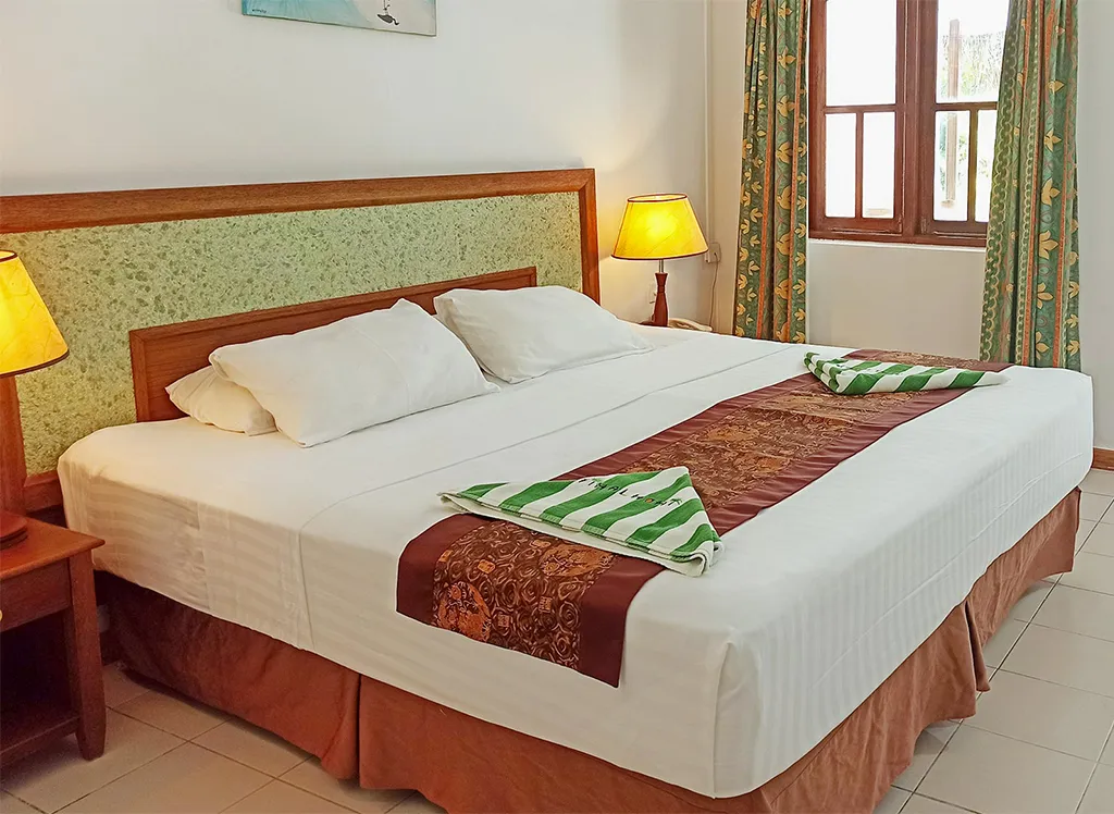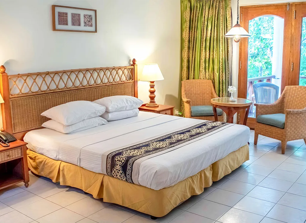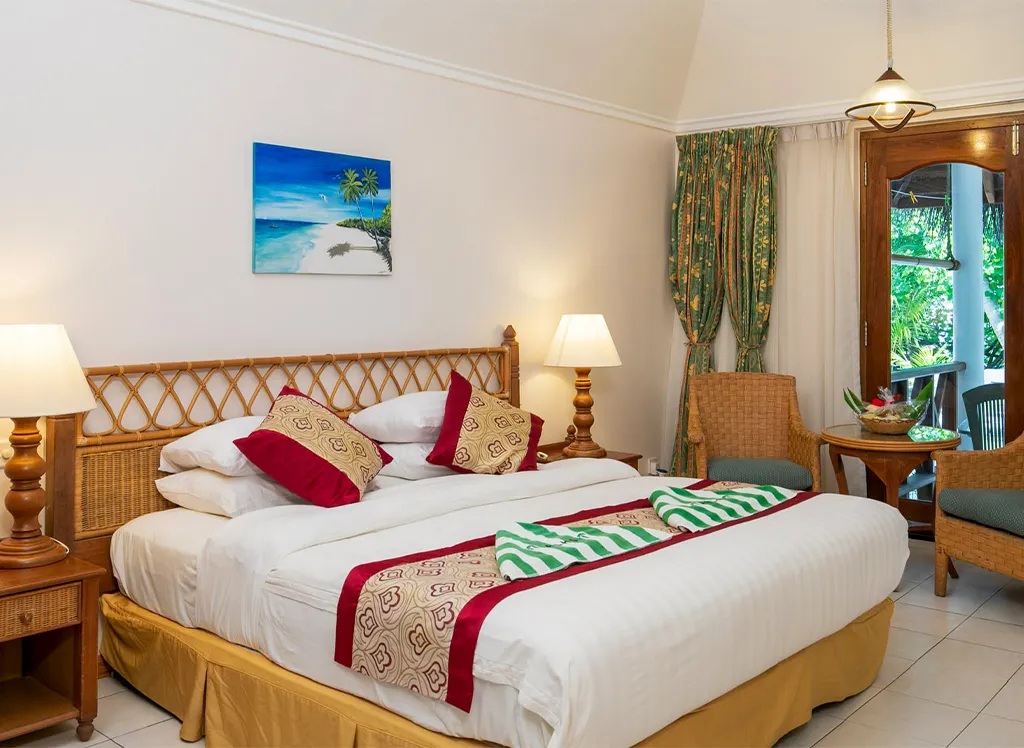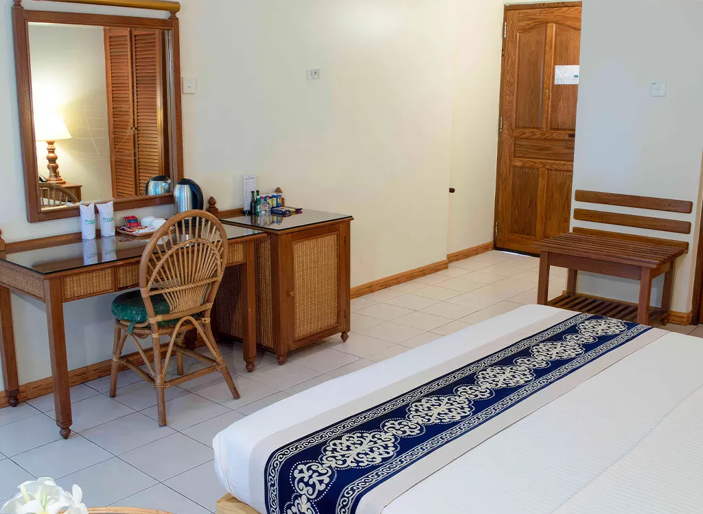 Alla rum på Fihalhohi Island Resort har endera en dubbelsäng eller två separata enkelsängar, samt plats till en extrasäng. På rummen finns dessutom luftkonditionering, säkerhetsskåp, wifi samt ett badrum med dusch eller badkar.