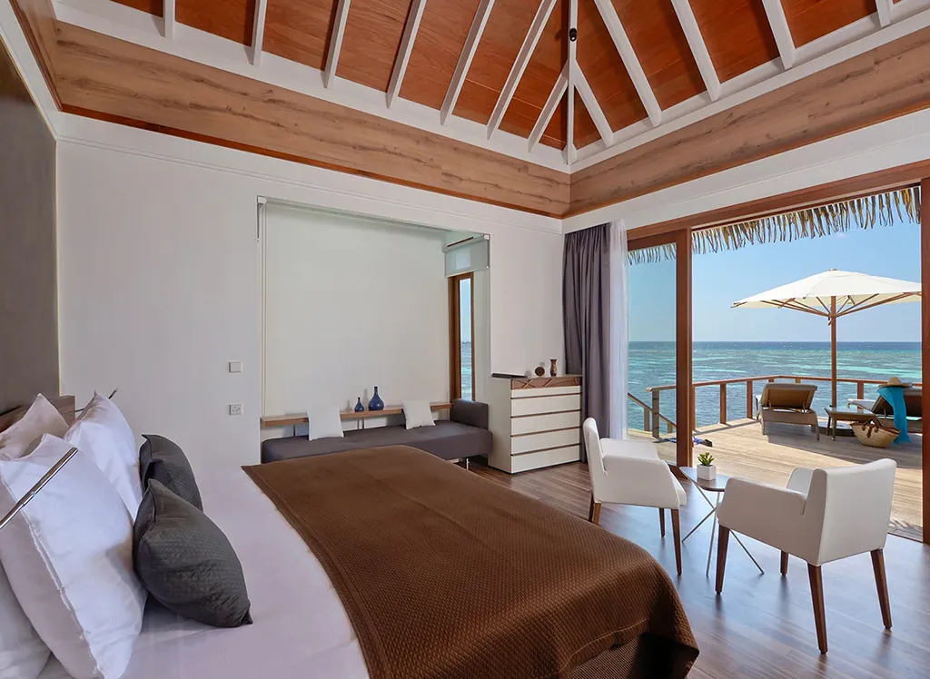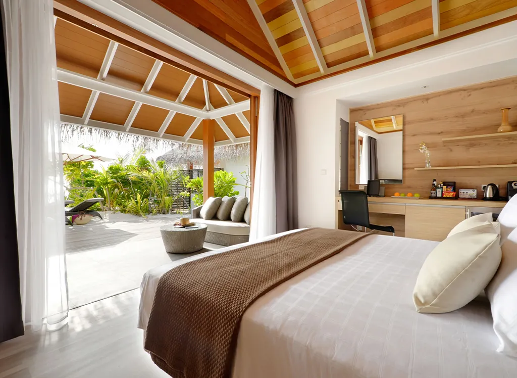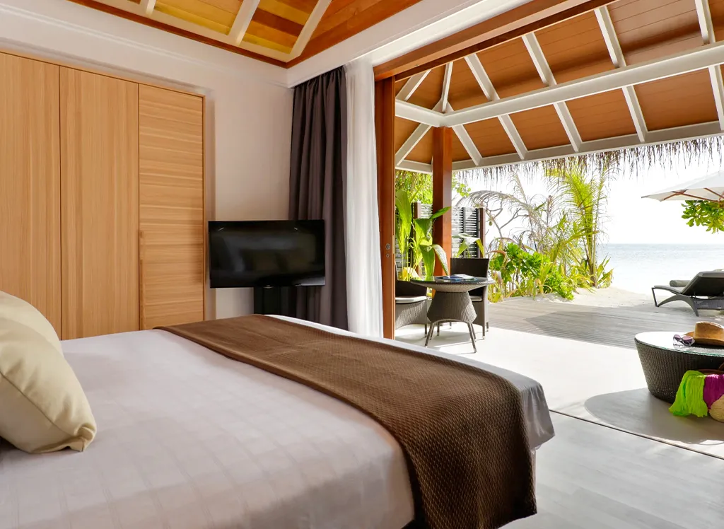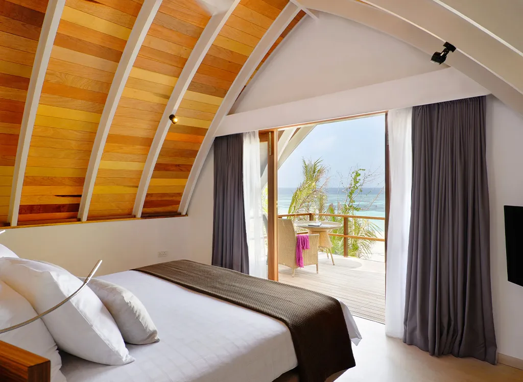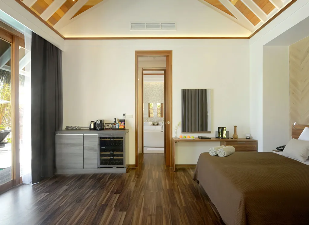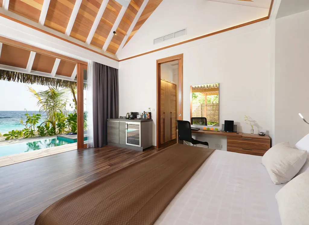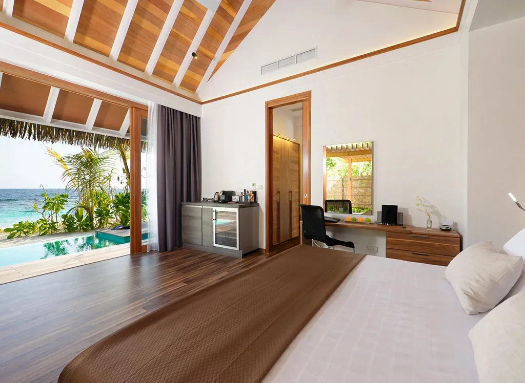 På Kandolhu Maldives bor du i en av anläggningens 30 lyxiga villor med dubbelsäng, luftkonditionering, minibar, elektroniskt värdeskåp och strandhanddukar.