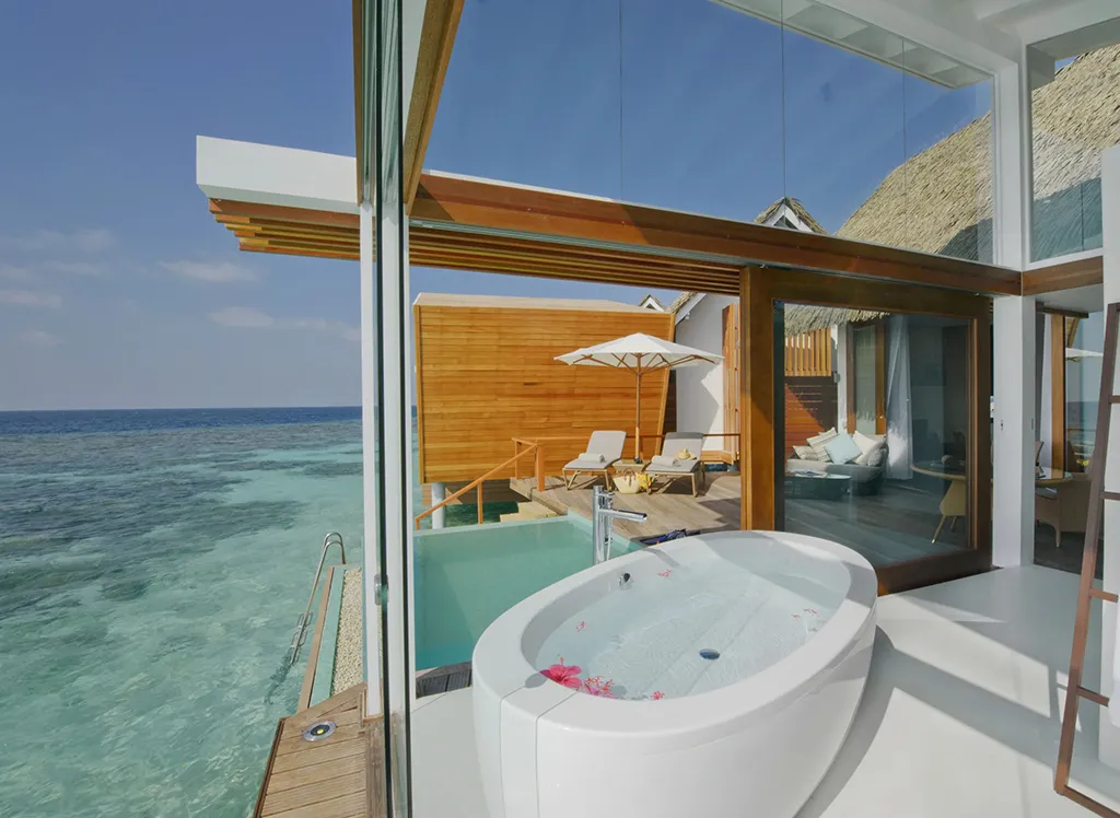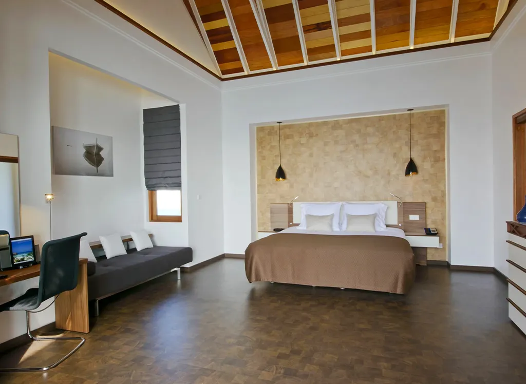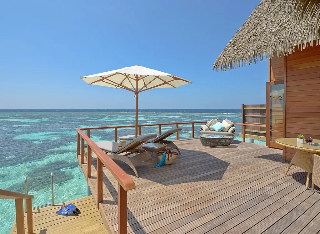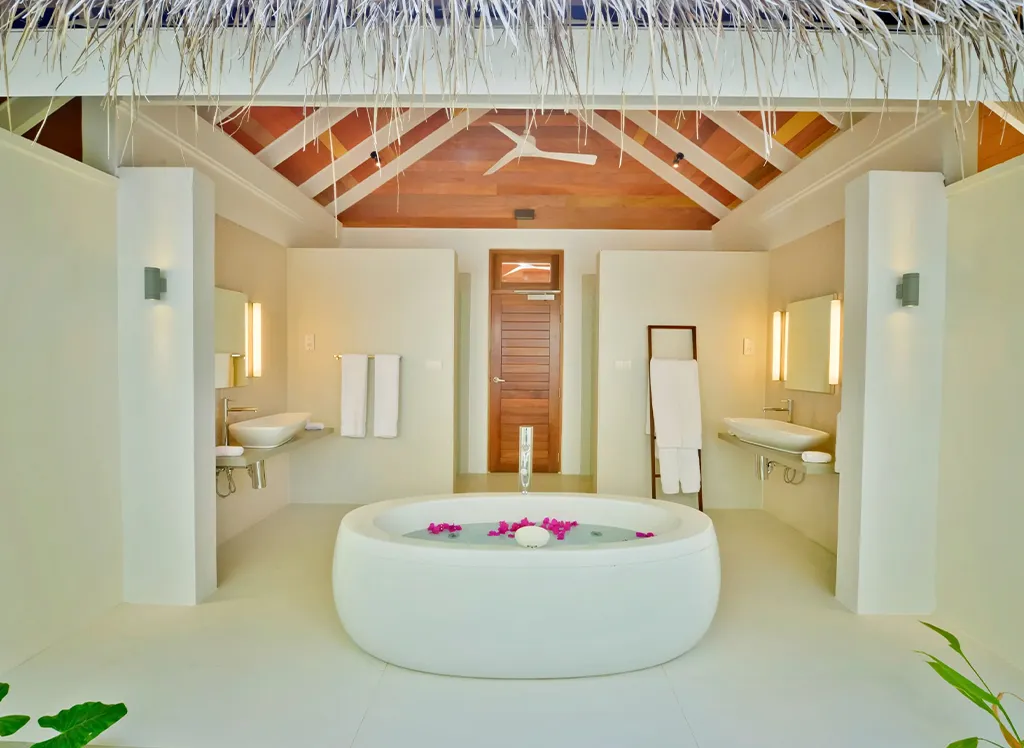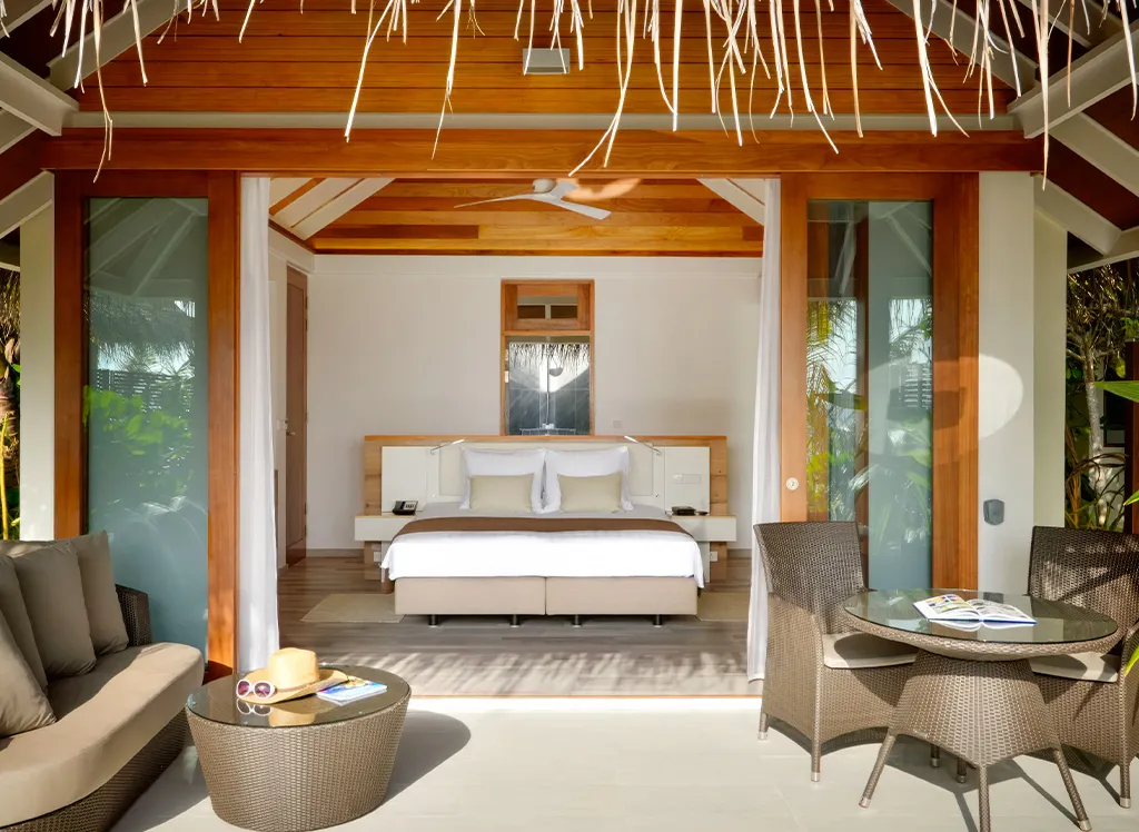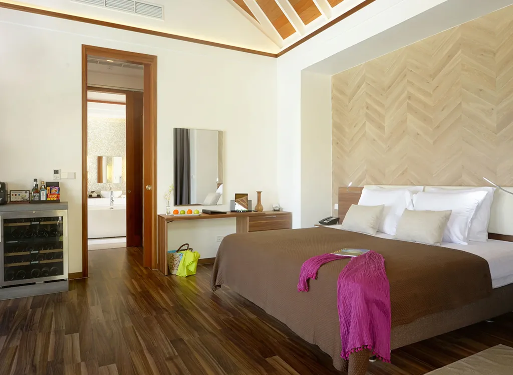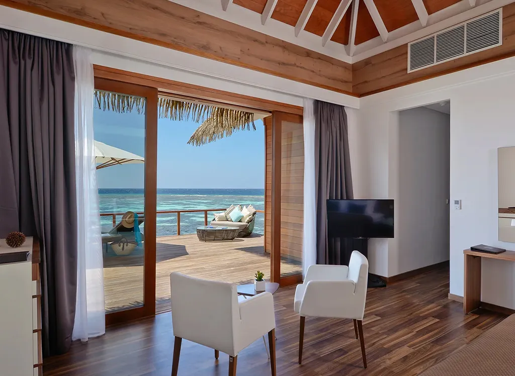 På Kandolhu Maldives bor du i en av anläggningens 30 lyxiga villor med dubbelsäng, luftkonditionering, minibar, elektroniskt värdeskåp och strandhanddukar.
