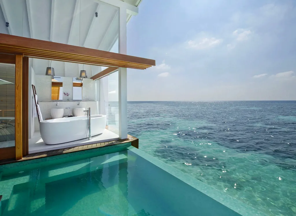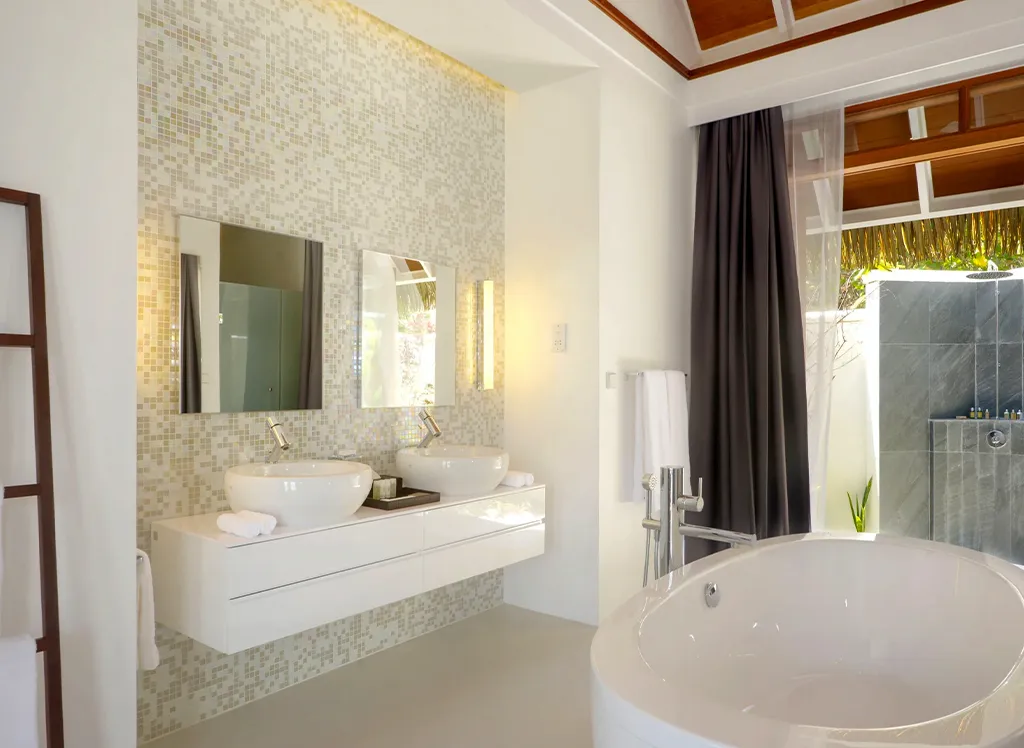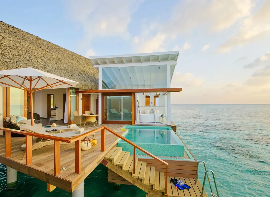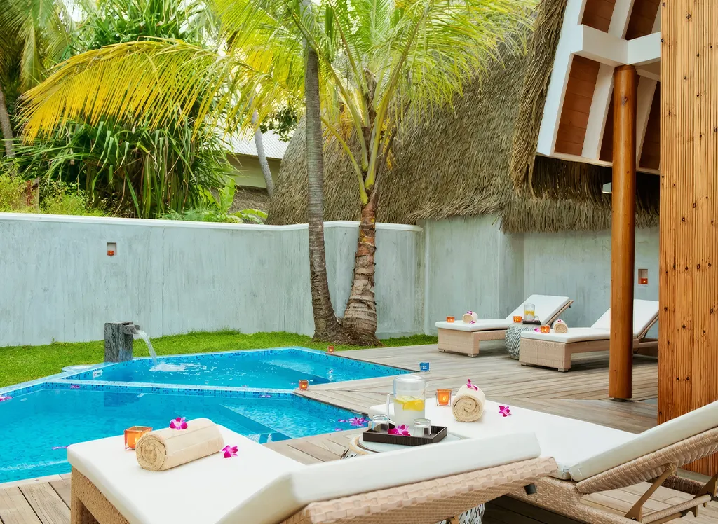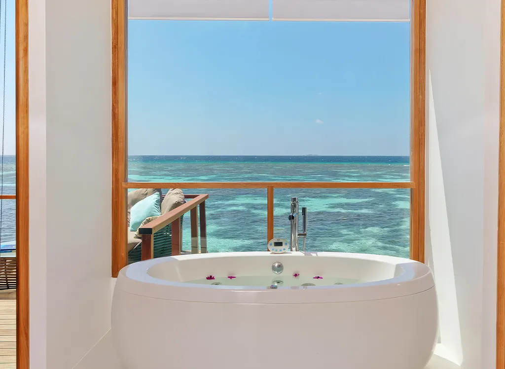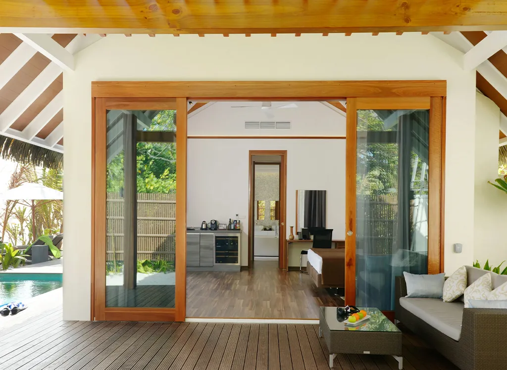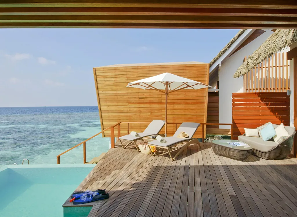 På Kandolhu Maldives bor du i en av anläggningens 30 lyxiga villor med dubbelsäng, luftkonditionering, minibar, elektroniskt värdeskåp och strandhanddukar.