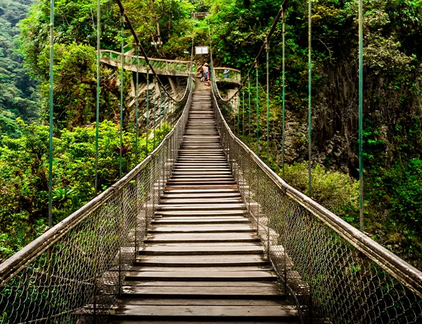 På vägen stannar du vid Pailón del Diablo-vattenfallet – ett av Ecuadors mest ikoniska vattenfall. Här kan du ta en kort vandring och njuta av den imponerande utsikten över det kraftfulla vattenfallet och den frodiga naturen omkring.