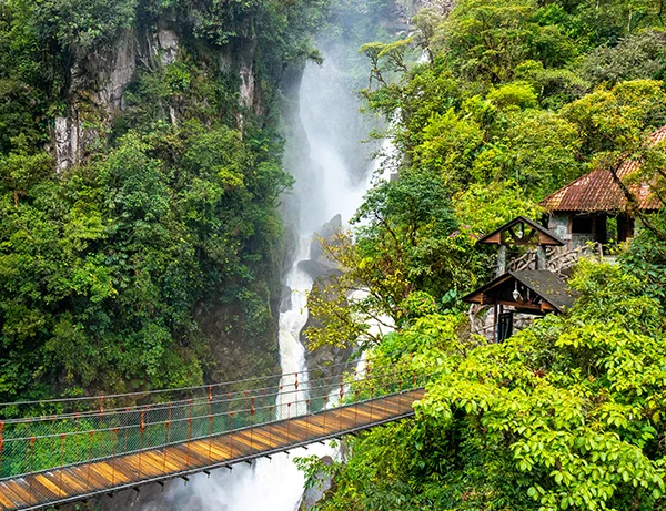 Idag kör du till Baños de Agua Santa, en charmig stad vid foten av den aktiva Tungurahua-vulkanen. Staden är känd för sitt spektakulära läge och sitt milda klimat, omgiven av gröna berg och brusande floder.