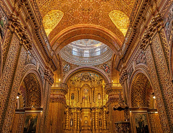 Dagen börjar i Quitos gamla stadskärna, där du får utforska de stämningsfulla gatorna till fots och uppleva stadens arkitektoniska pärlor, bland annat den praktfulla gyllene kyrkan, det livliga torget San Francisco och det historiska huvudtorget Plaza Grande.
