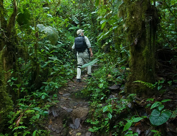 Från Quito fortsätter resan till Mindo, ett frodigt område känt för sin molnskog och sitt rika djurliv. Du vandrar längs vattenfall och genom tät grön skog, där färgglada fåglar som tukaner och kolibrier flyger bland trädtopparna.