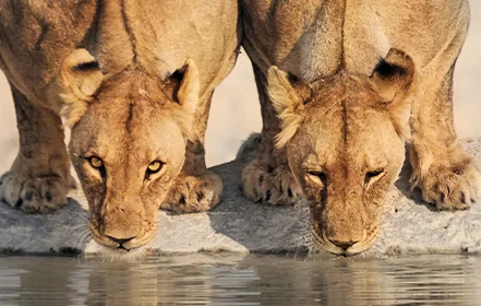 Etosha är ett ökenlandskap med stora, öppna slätter, och vatten är den mest knappa naturresursen. Det finns dock många vattenhål här - både naturliga och människoskapade - och kanske kan du ha turen att uppleva djuren på nära håll när de törstiga djuren kommer för att släcka törsten.