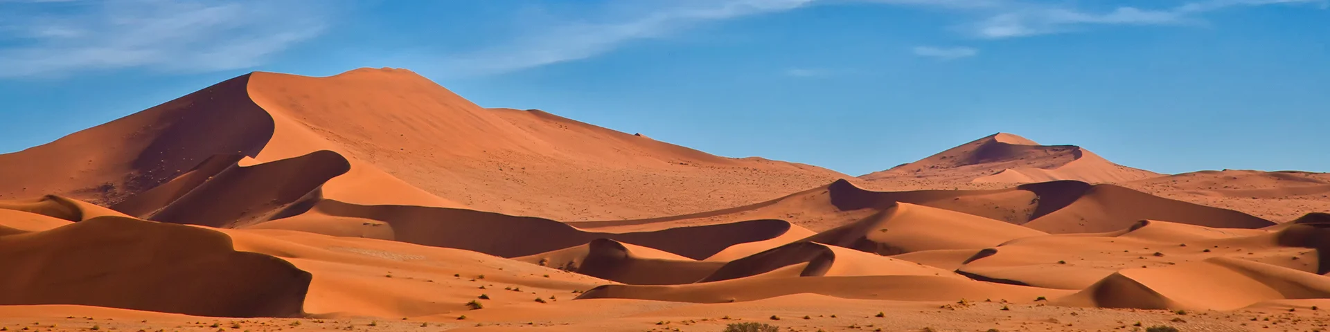 Upplev Namibias storslagna natur och unika djurliv, när du reser genom några av landets mest ikoniska landskap – från djurrika Etosha Nationalpark till den ödsliga Skeleton Coast och de dramatiska sanddynerna i Sossusvlei.